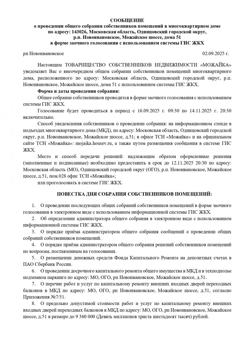 Пояснительная записка к бухгалтерскому балансу и отчету о финансовых результатах Товарищество собственников недвижимости "МОЖАЙКА" за 2025г.